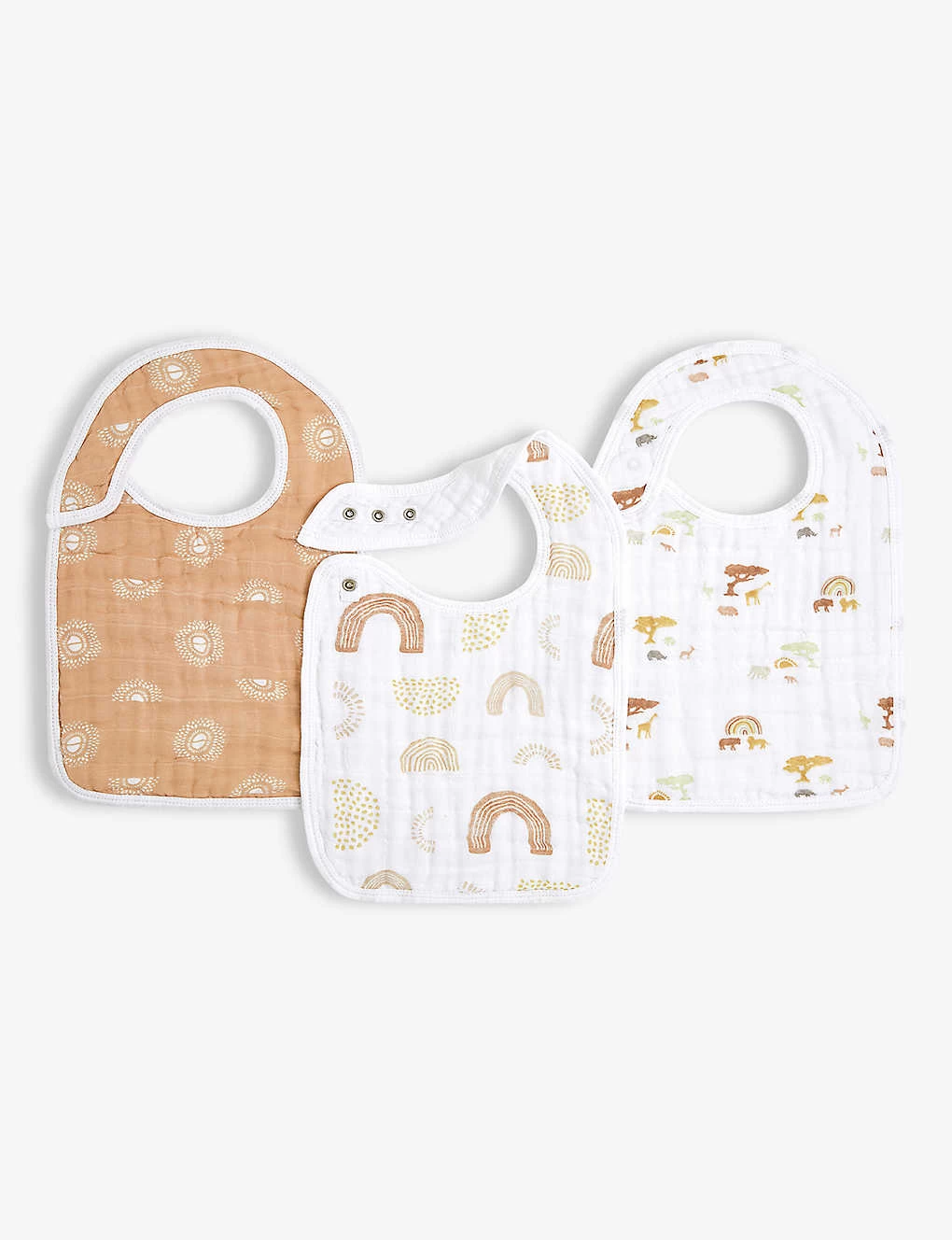 - Includes: 3 muslin bibs, graphic print, lightweight