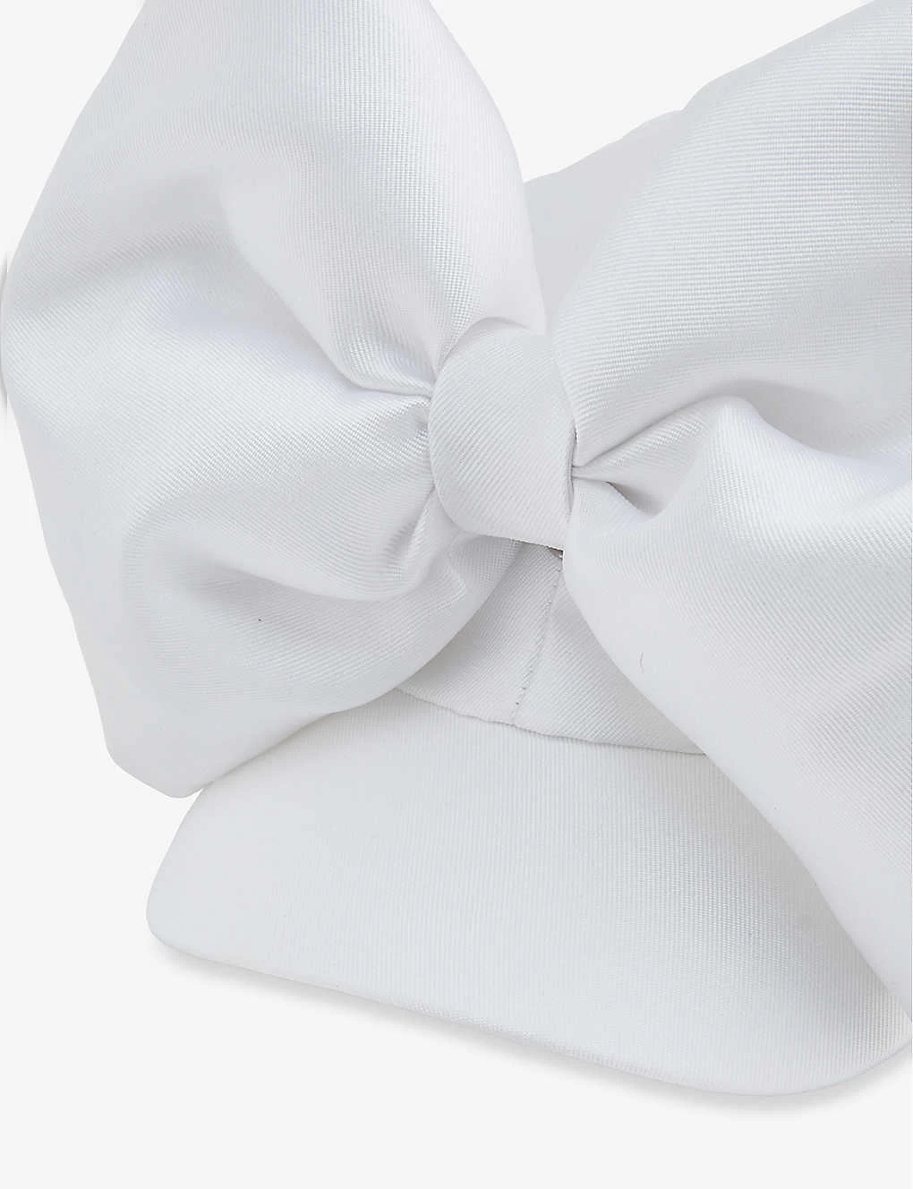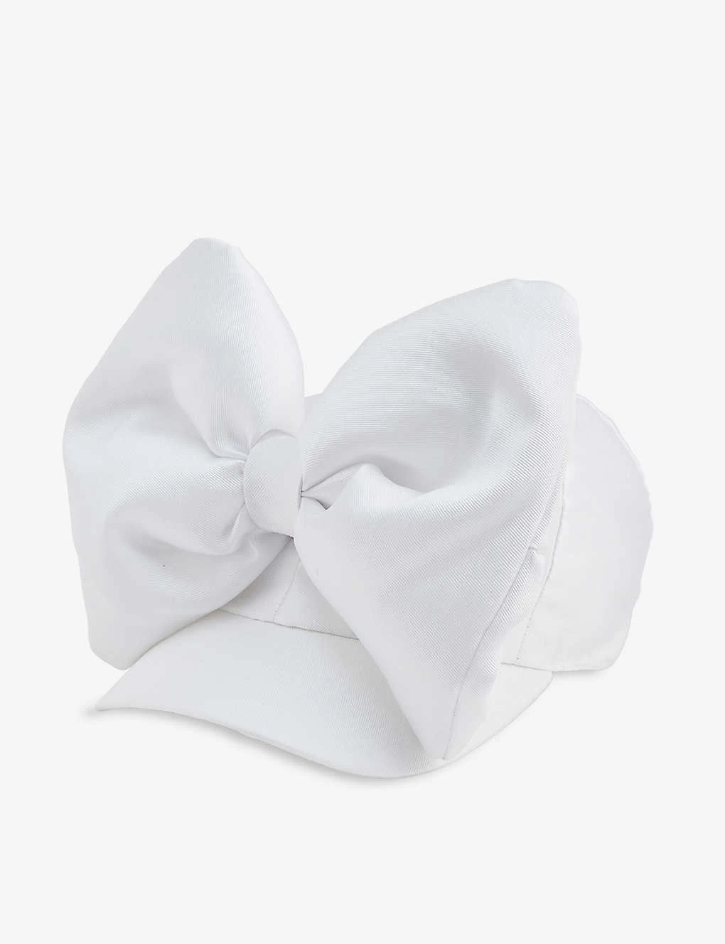 - Curved peak, six panels, removable padded bow on top and at front, all over satin-twill texture, internal sweatband, fully lined