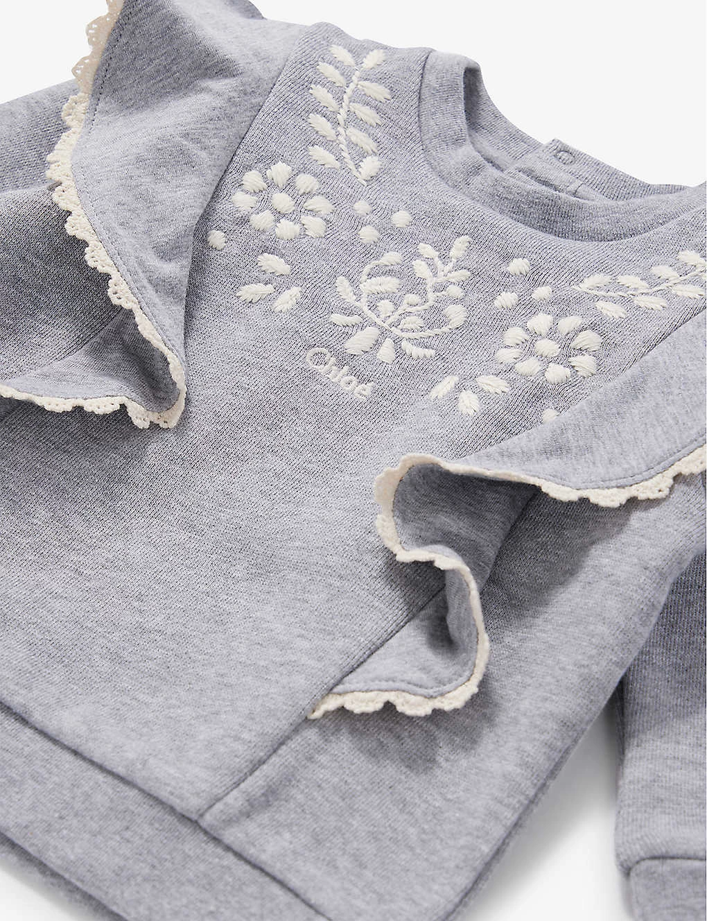 Chloé Ruffled Floral-embroidered Cotton-jersey Dress 6 Months-3 Years