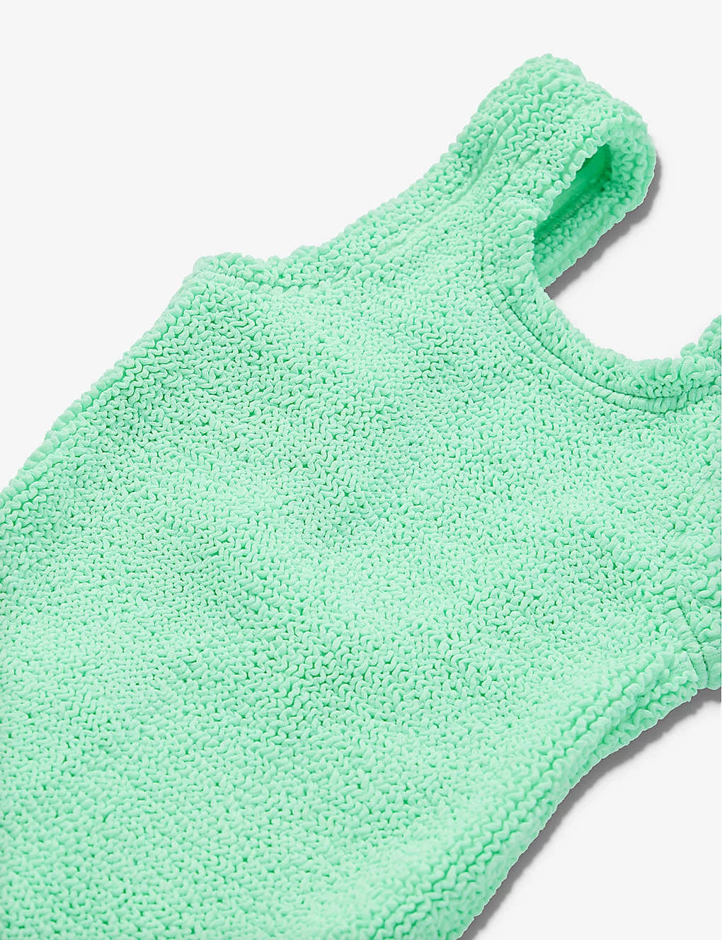 - Square neck, shoulder strap, dipped at back, all-over crinkle texture, lined