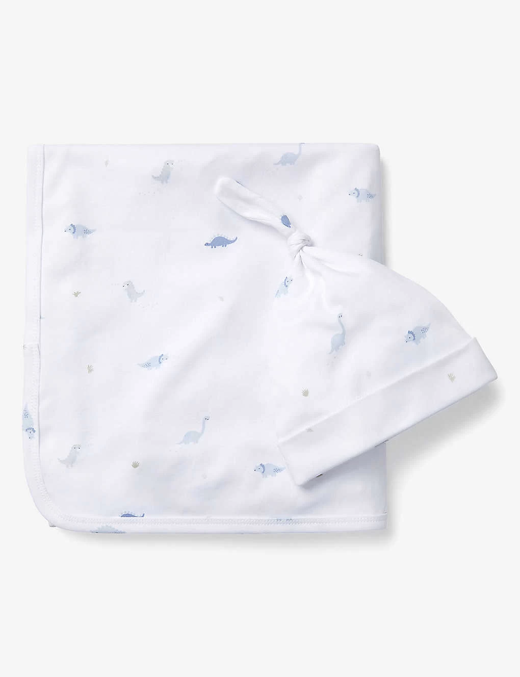 - Hat: all-over dinosaur print, knotted top, upturned hem
