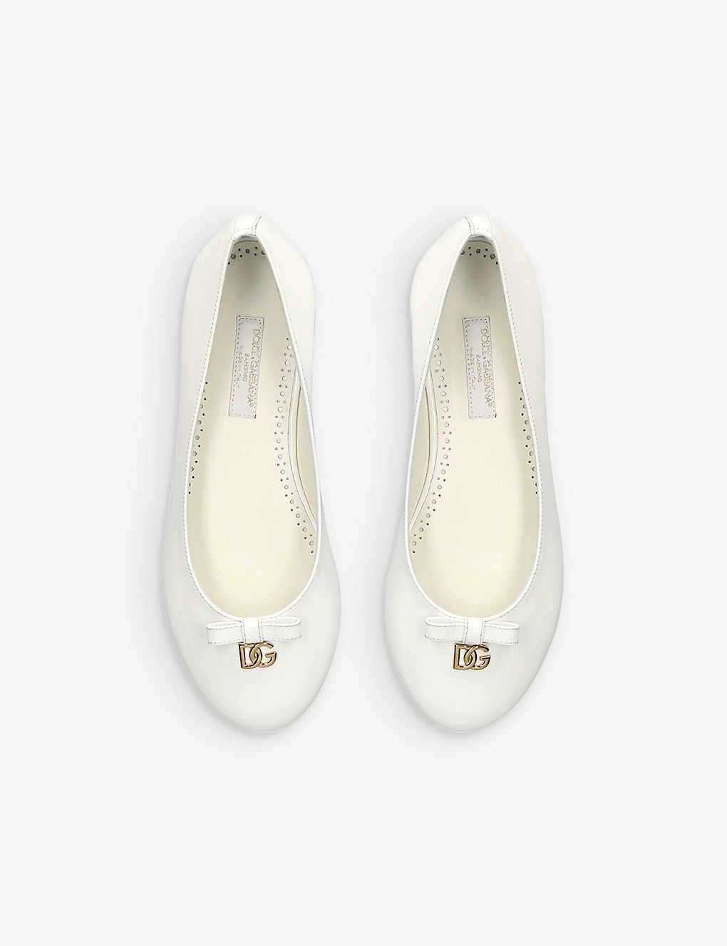 - Round toe, flat sole, gold-toned DG-logo at front, bow at front