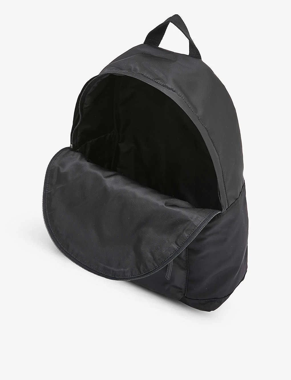 - Top-handle, adjustable shoulder straps, brand print at front, zipped pocket at front, one main compartment, fully lined