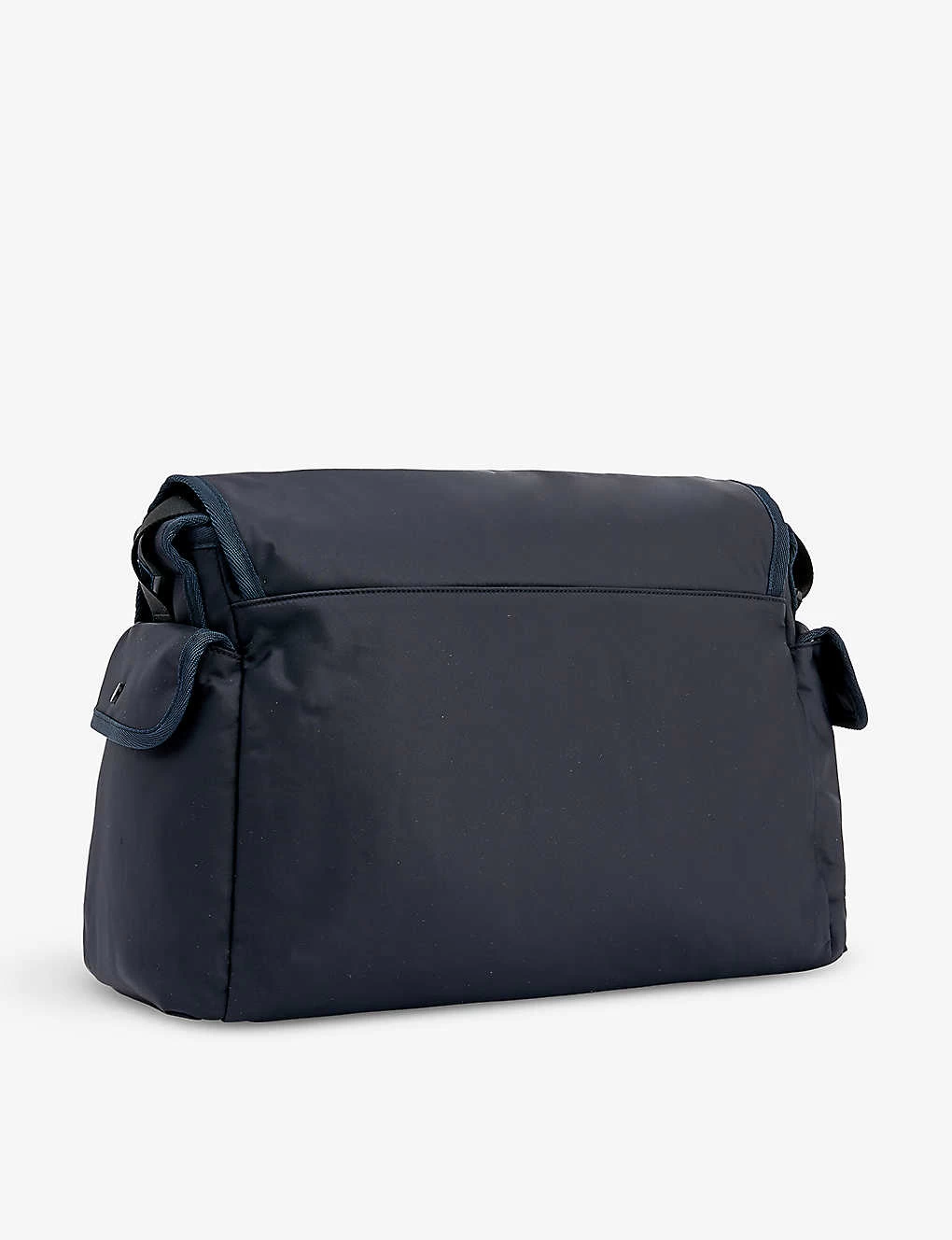 - Structured shape, adjustable shoulder strap, two flap pockets at side, embroidered branding at front, one main compartment, zipped pocket and four mesh pockets at interior, brand patch at interior, changing mat and bottle cover at interior