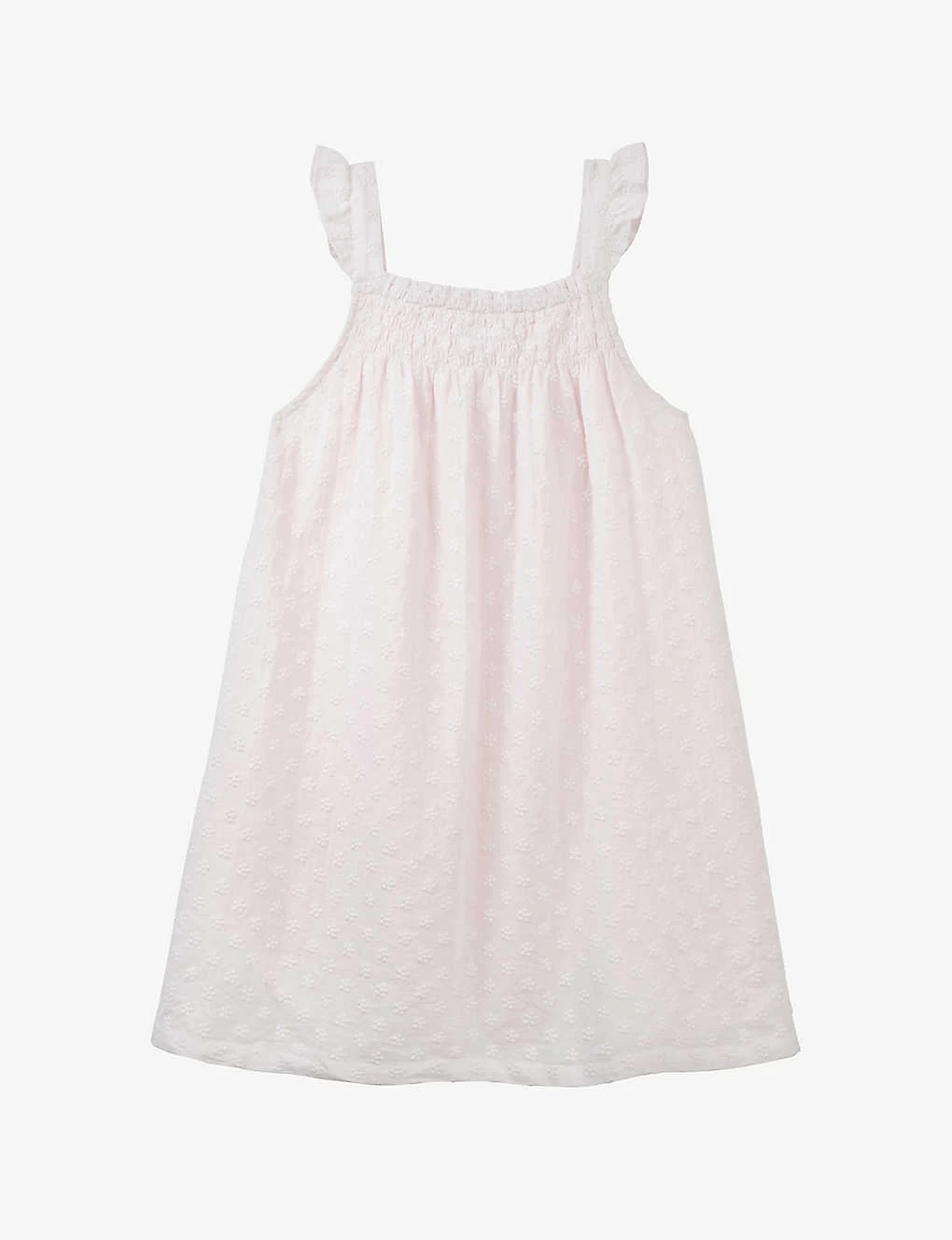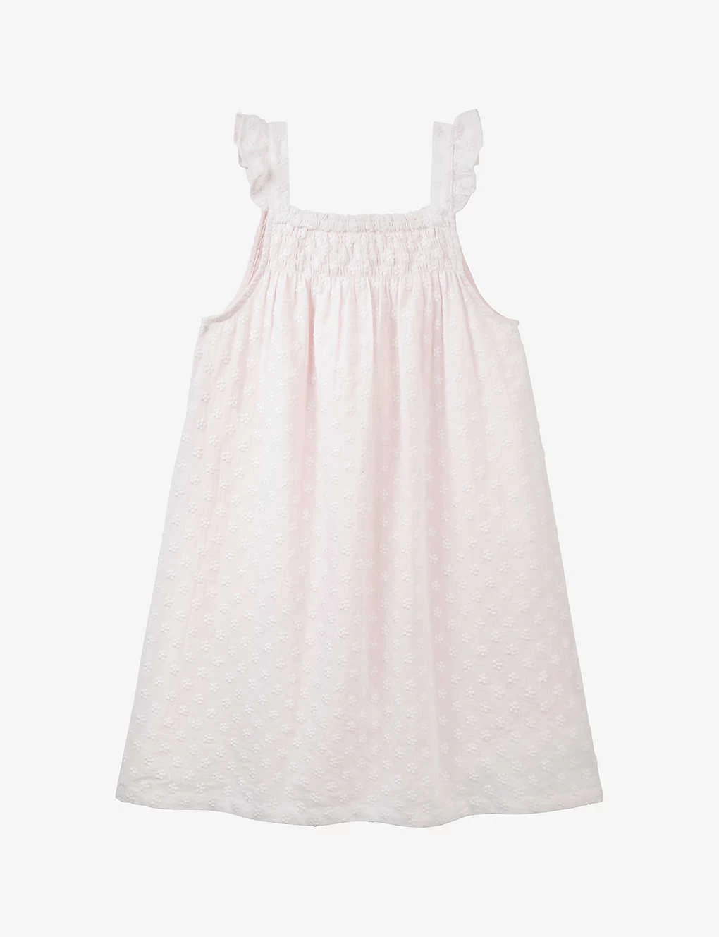 - Square neck, frilled shoulder straps, elasticated smocked neckline, all-over floral embroidery, fully lined