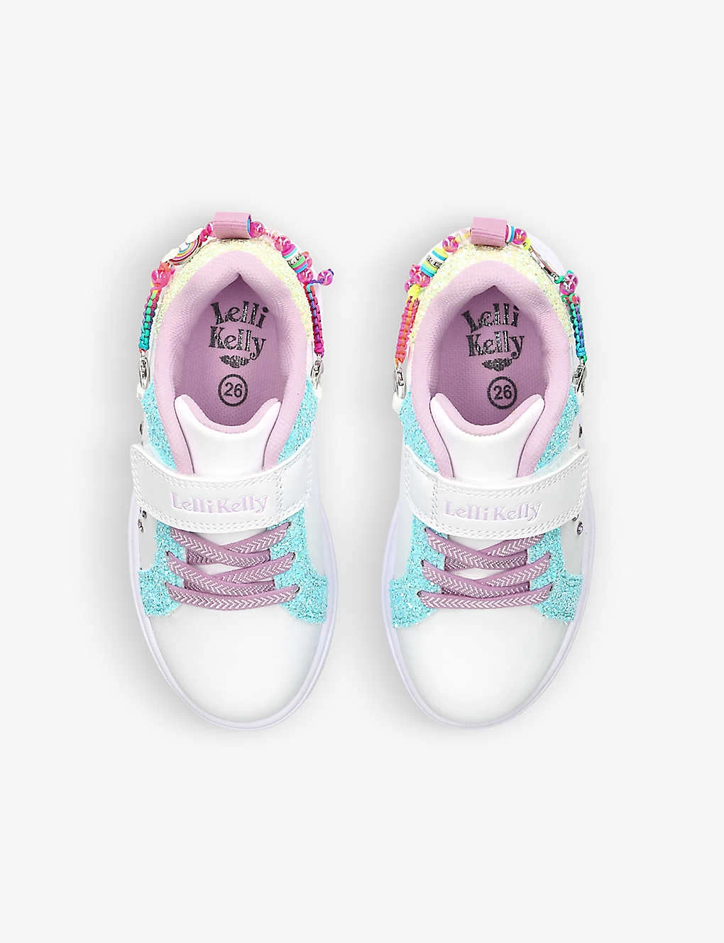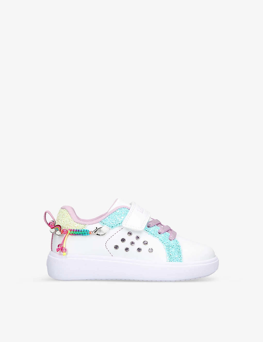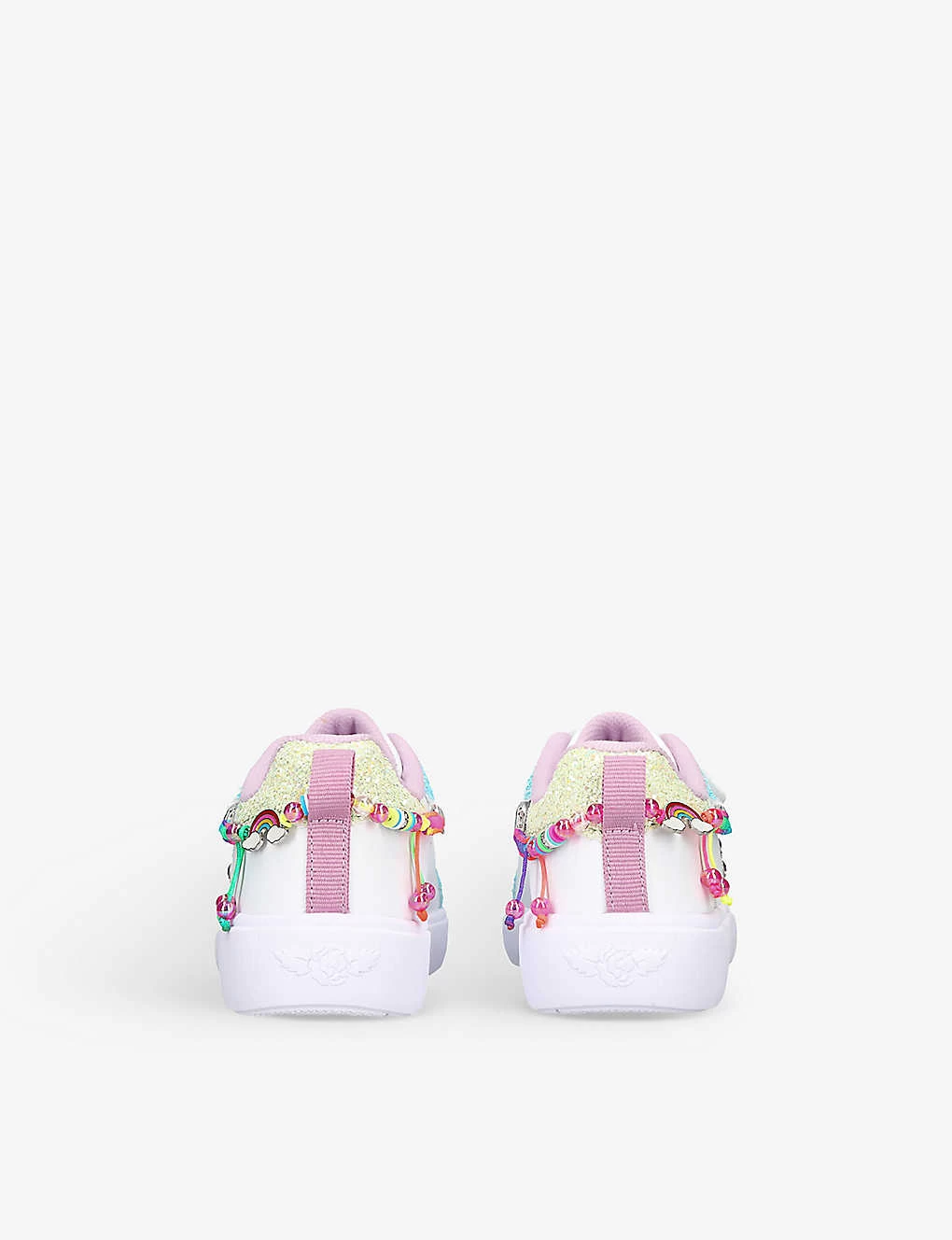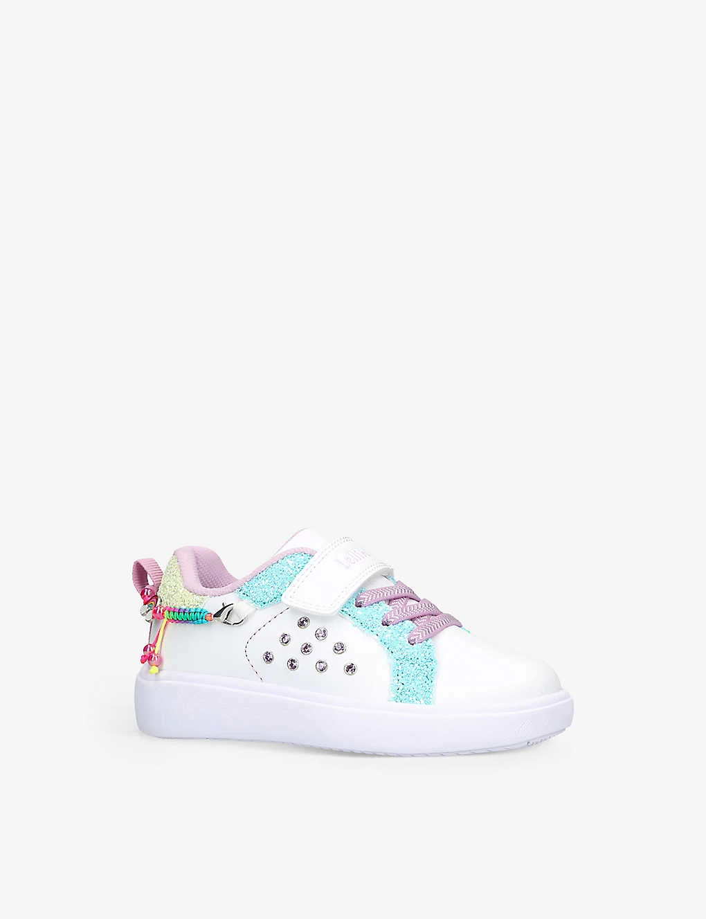 - Round toe, gem-encrusted embellishment on side panel, removable chain charm on heel, metallic contrast panels, contrast laces heel tab