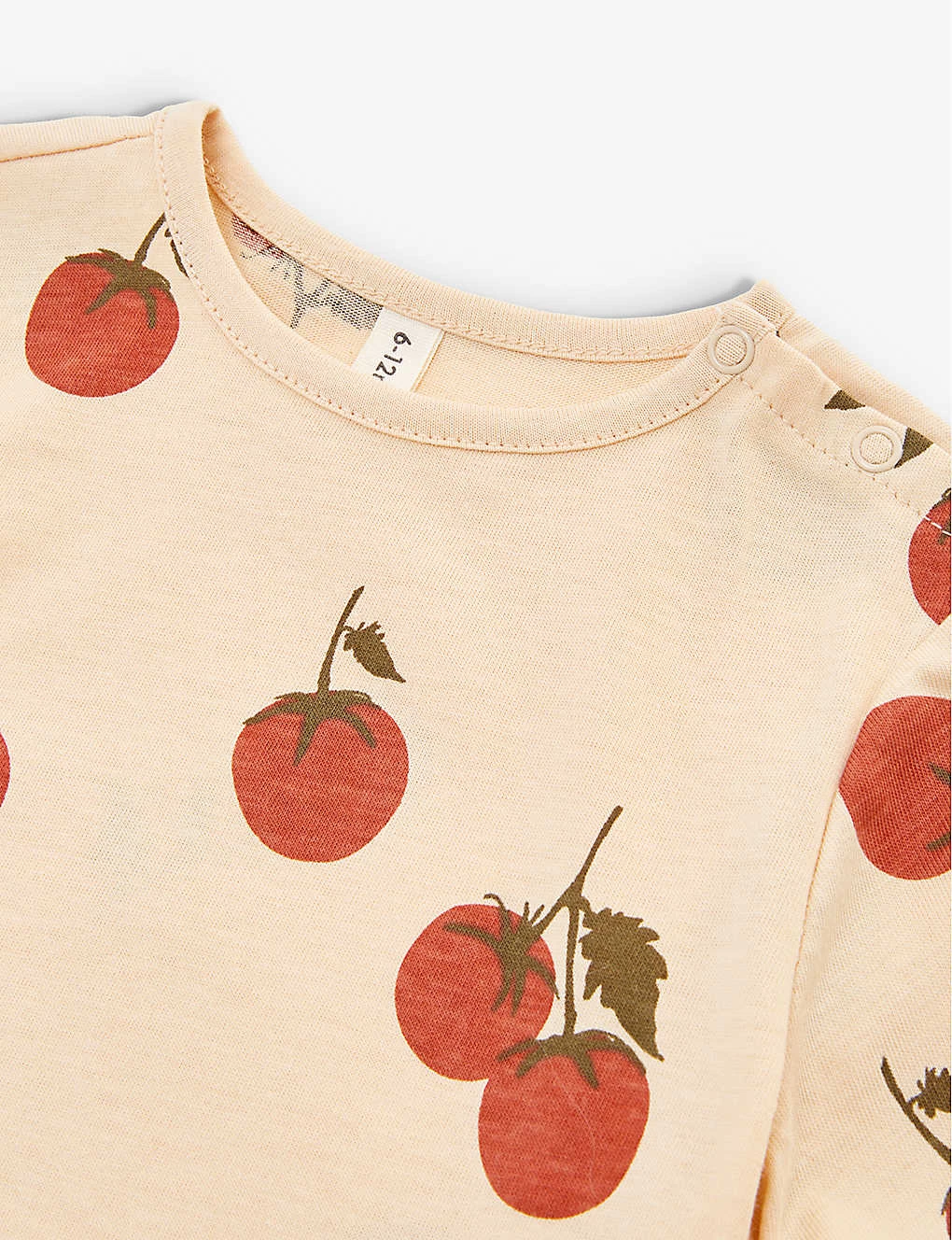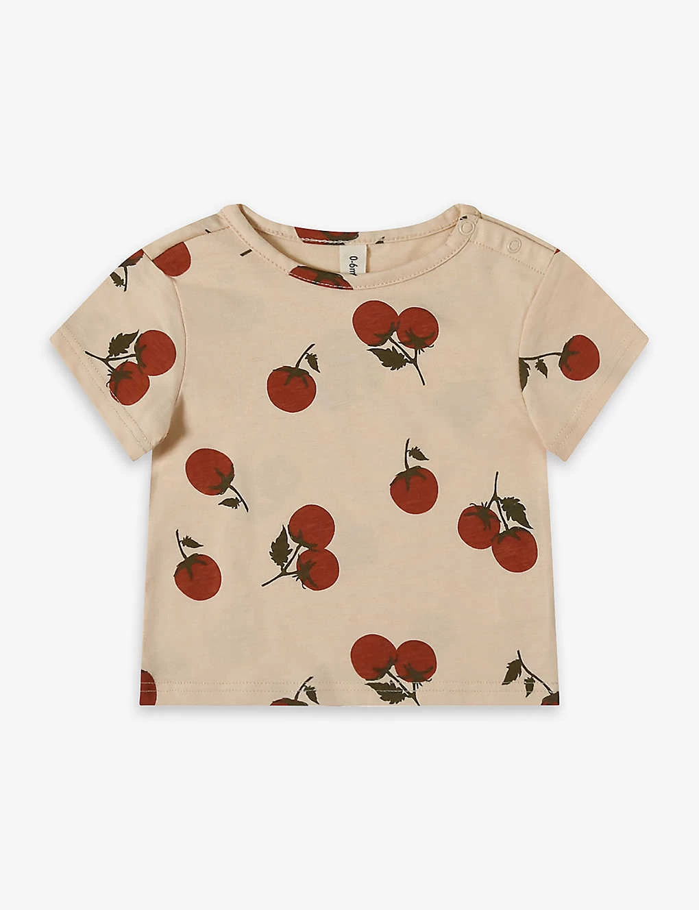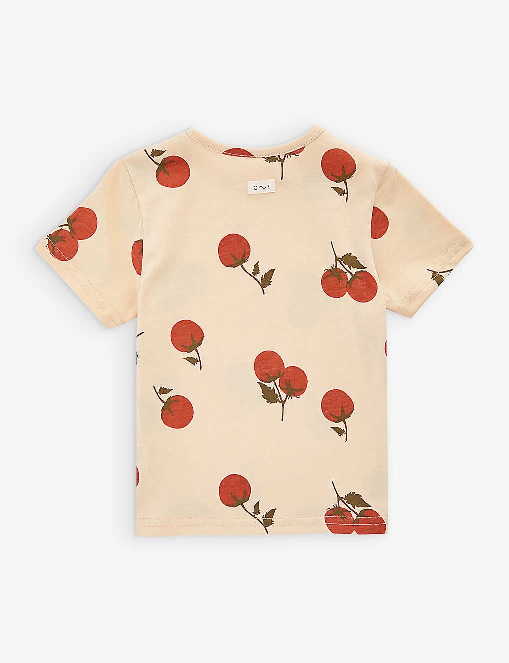 - Regular-fit, round neck, ribbed trim at neck, short sleeves, all-over tomato pattern, embroidered brand patch at back