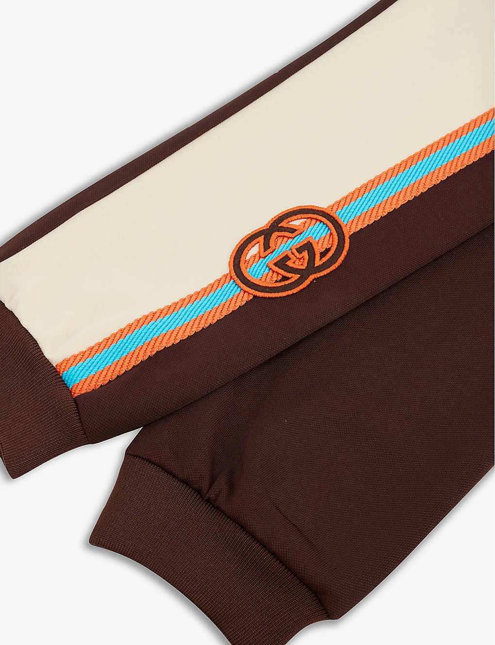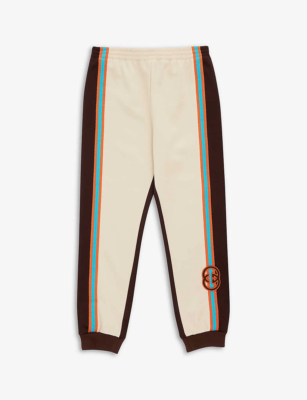 - Regular fit, elasticated waistband, tapered leg, contrast stripe trims at sides, brand monogram embroidery at side, colour block design, ribbed hems