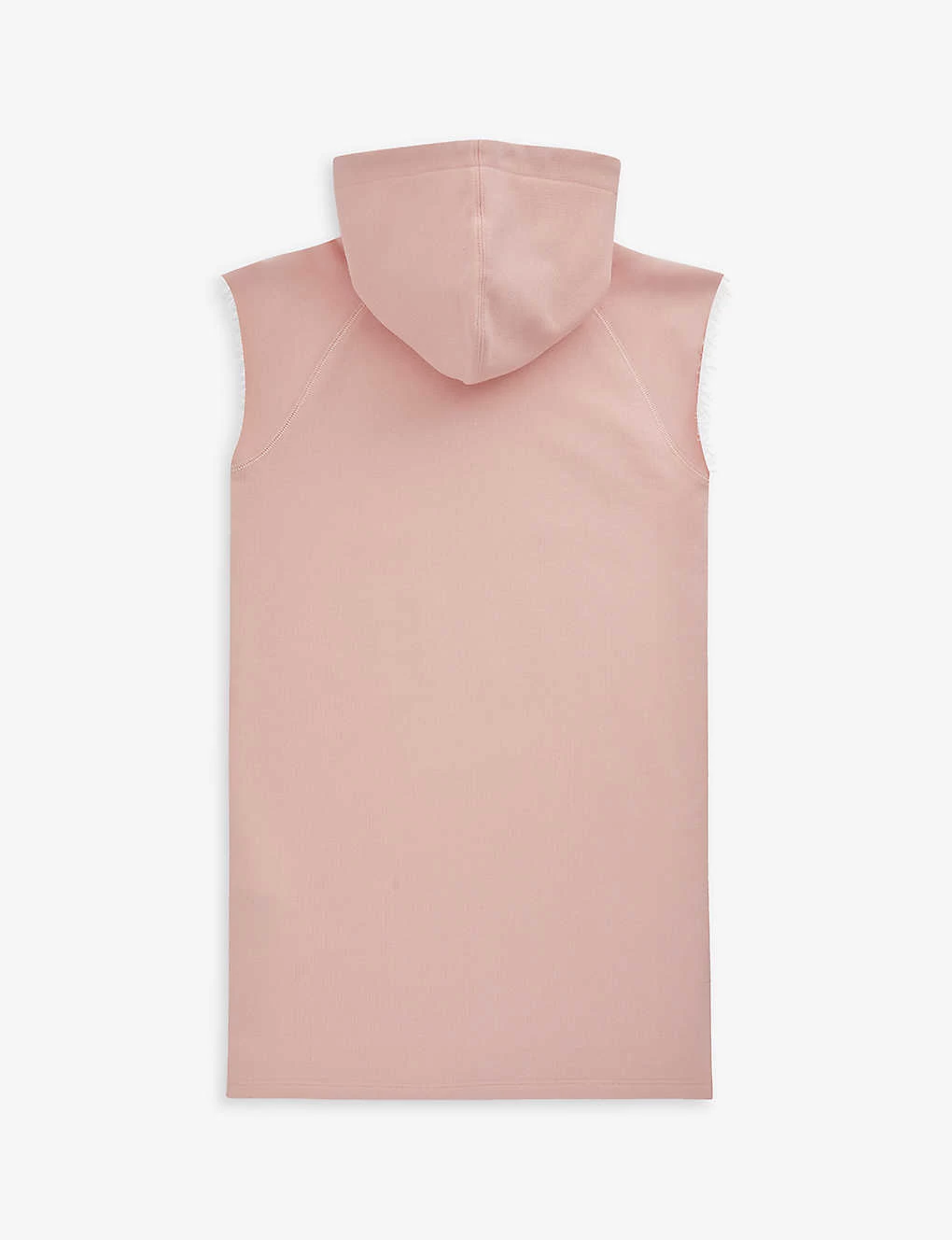 - Relaxed fit, round neck, hood, sleeveless, raw trims, brand print at front, split at sides