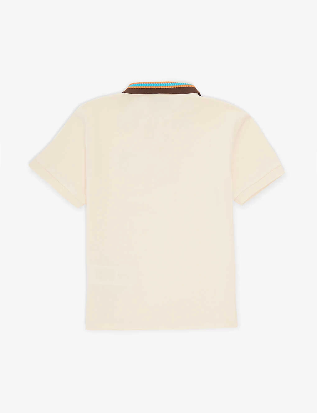 - Regular fit, ribbed striped collar, short sleeves, ribbed cuffs, monogram patch at front, straight hem