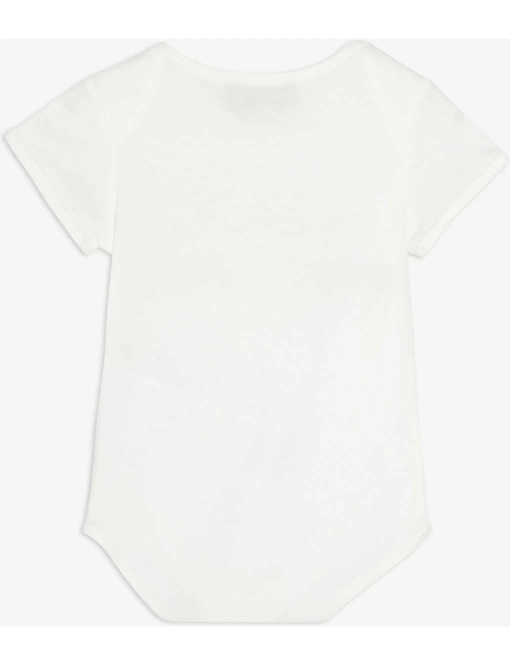 - Baby grow: round neckline, short sleeves, printed branding on chest, tonal stitching, snap fastening