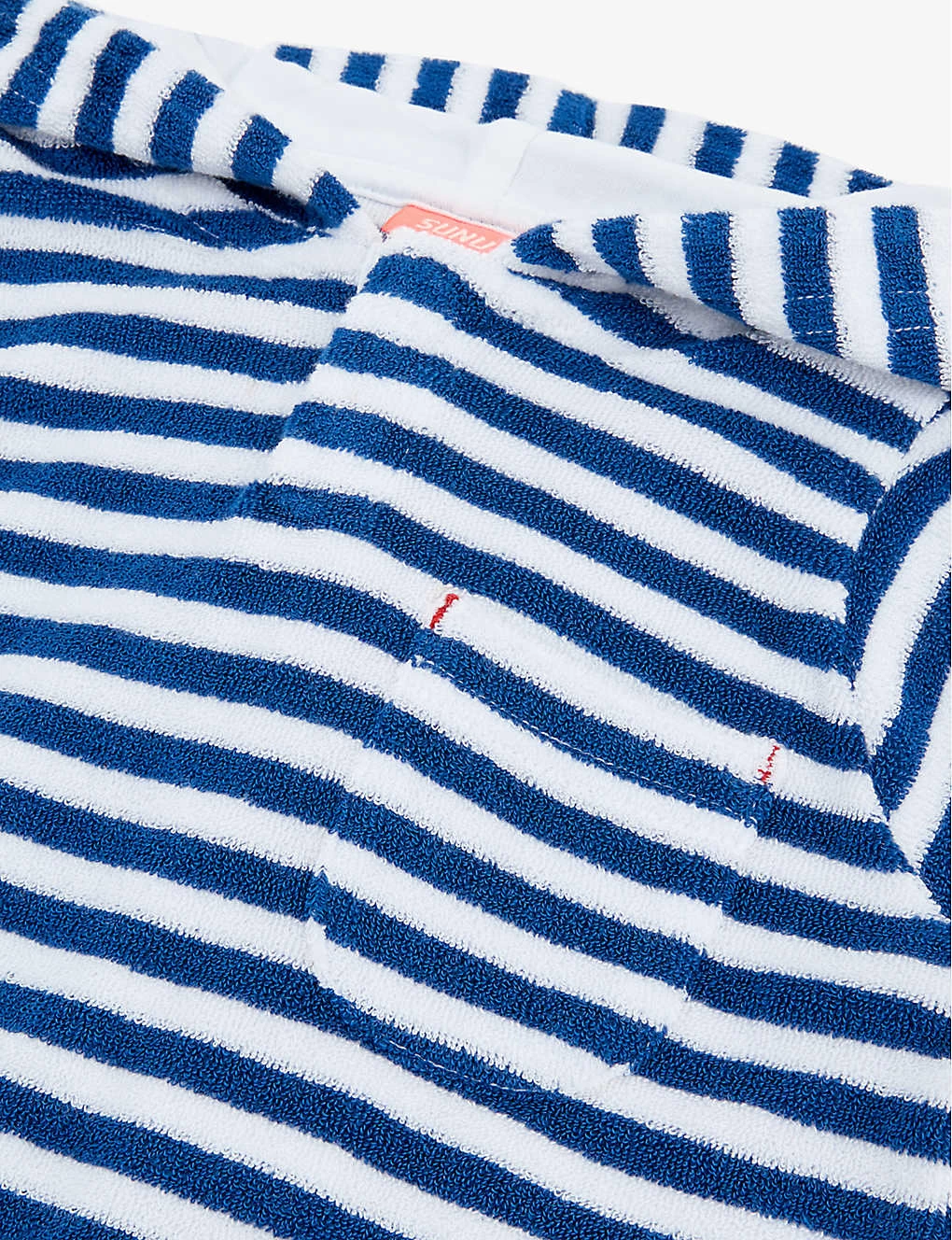 - Hood with ears, short sleeves, patch pocket at chest, all-over striped pattern and towelling texture