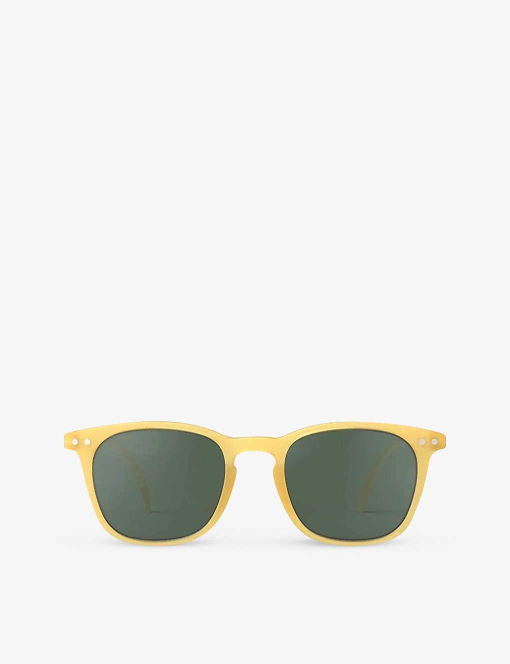 Square frame, semi transparent, pins at frame and temples, flexible arms, spring hinges, 100% UV protected
