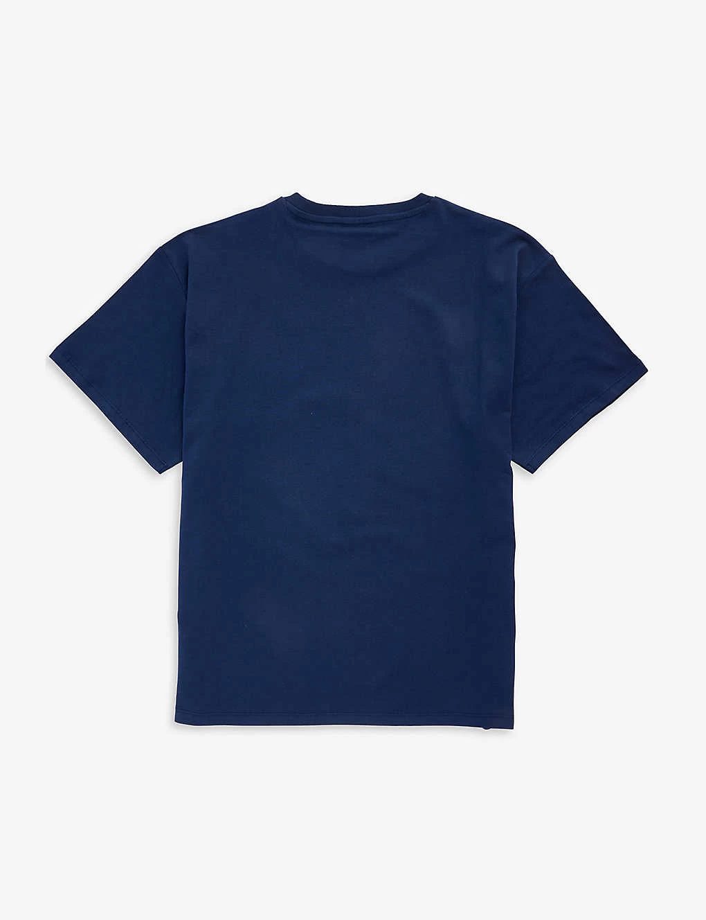 - Relaxed fit, ribbed crew neck, short sleeves, brand print at front, straight hem