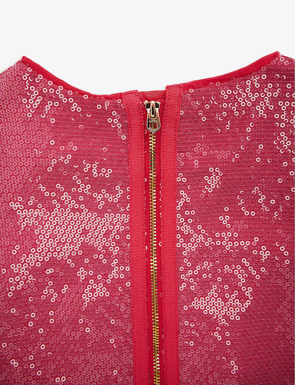 - Regular fit, round neck, short ruched sleeves, graphic design at front, all-over sequin embellishments, fully lined, ribbed trims
