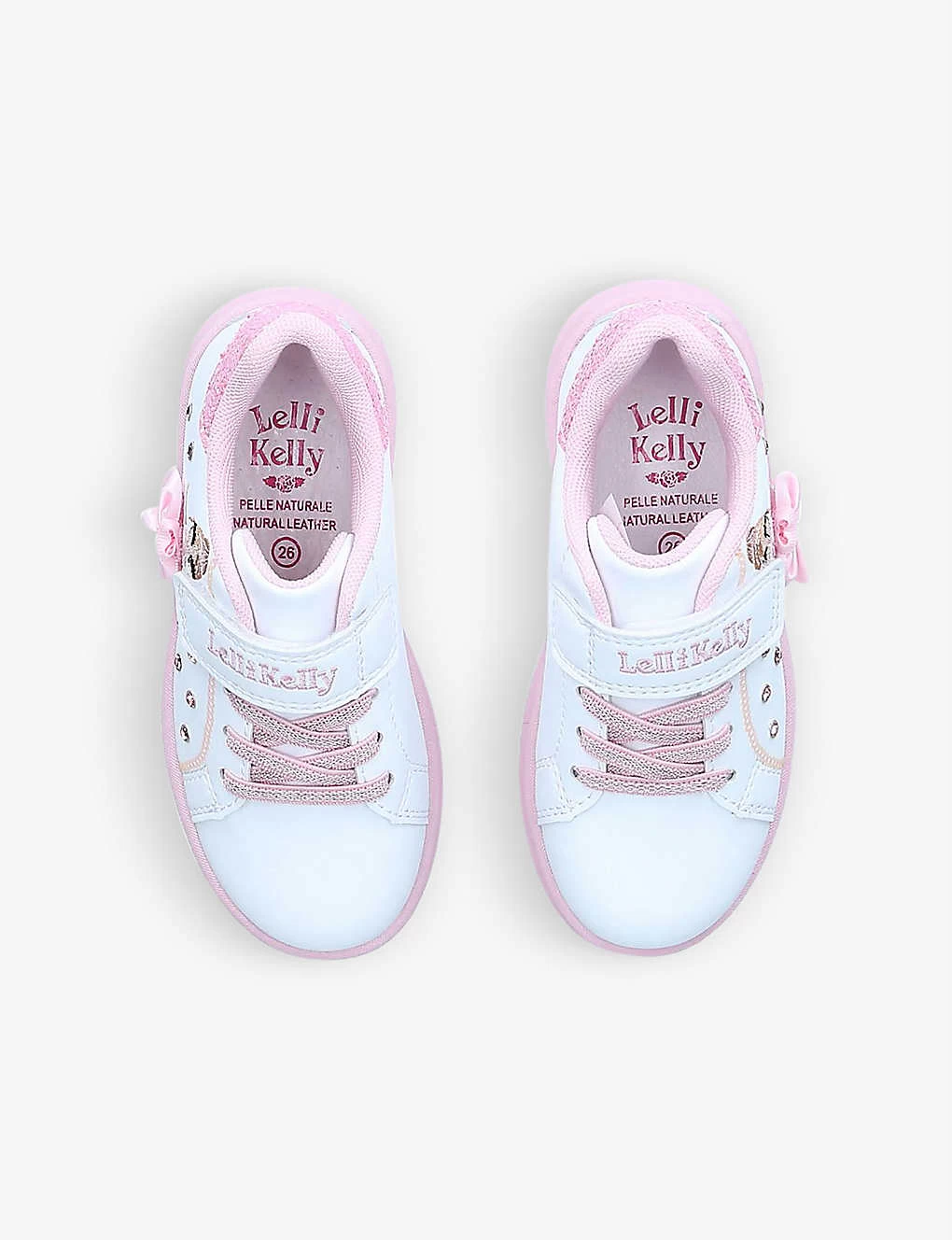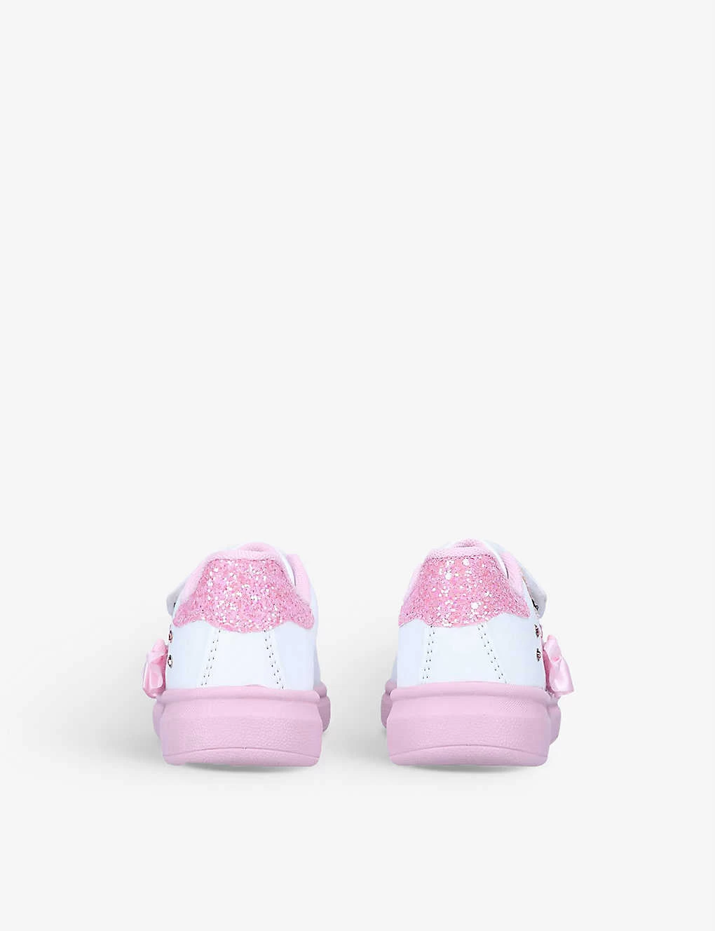 - Round toe, lace-up front, branded hook-and-loop-tape-fastening front strap, crystal embellishments at sides, embroidered ballerina at side, interchangeable tutu embellishment, glitter-embellished panel at heel
