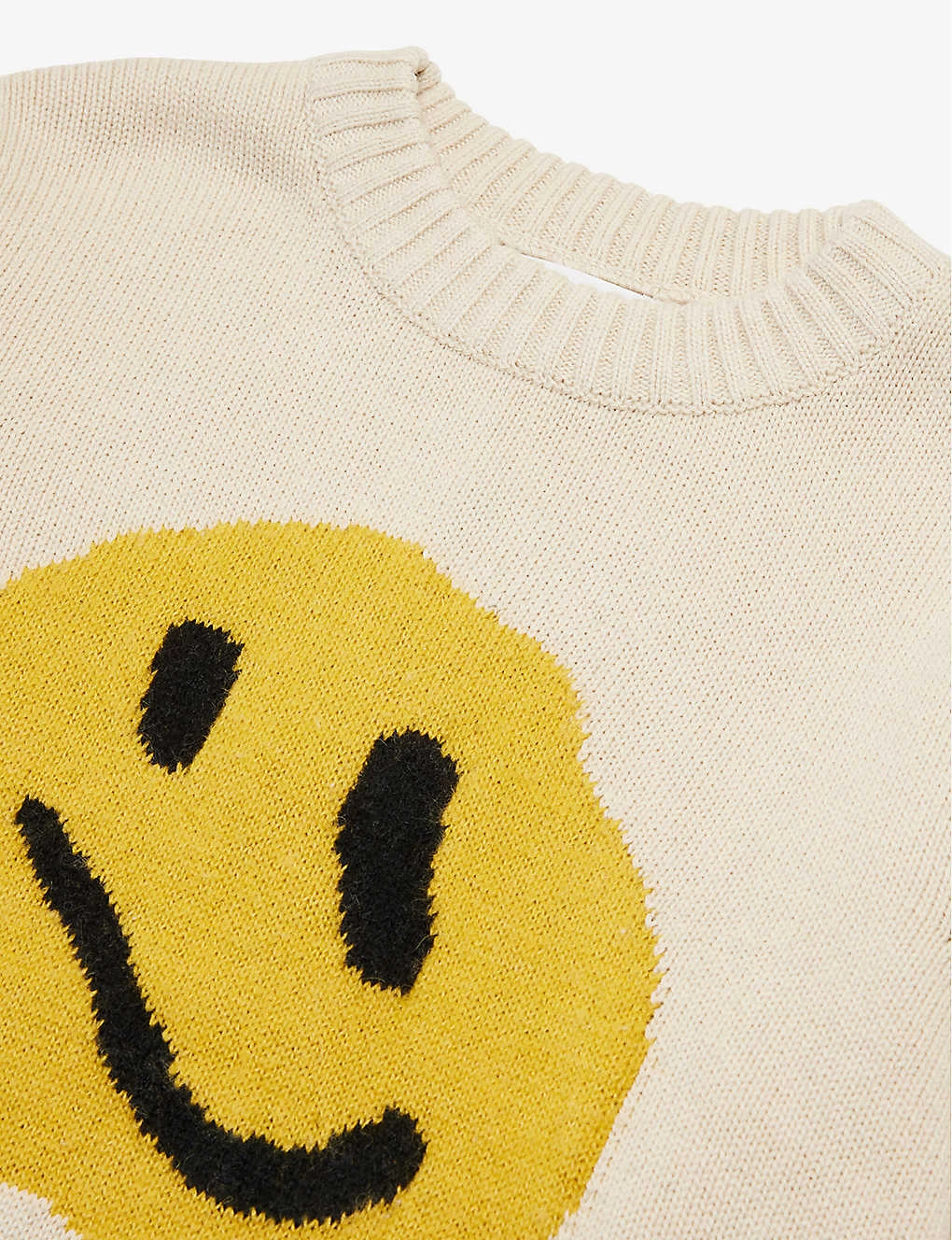 - Regular fit, round neck, long sleeves, smiley design at front, medium knit, ribbed trims