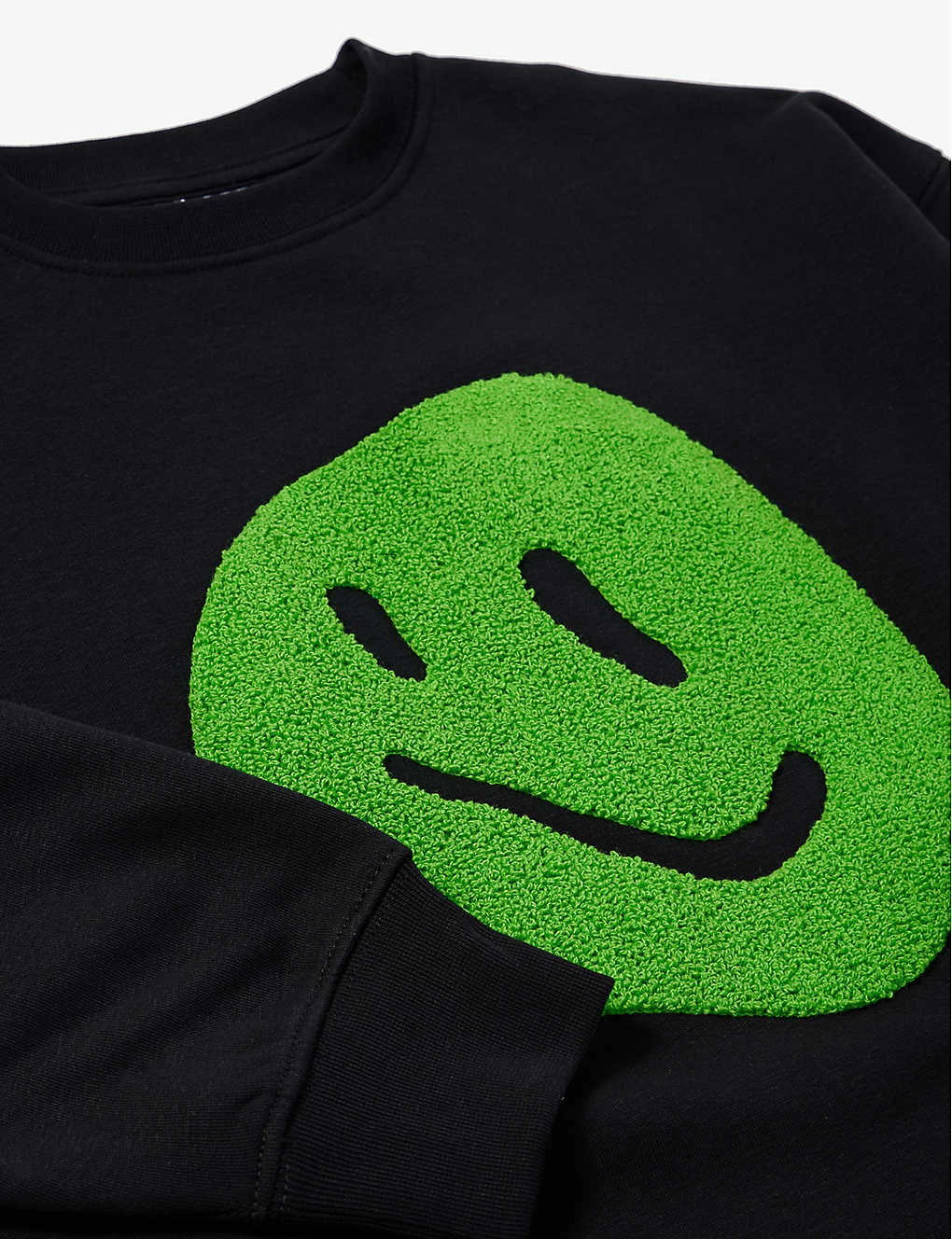 - Regular fit, crewneck, long sleeves, contrast towelling smiley at front, ribbed trims