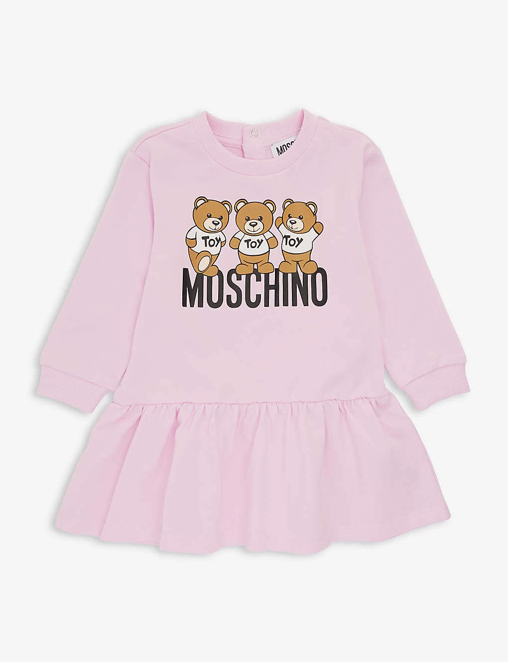 MOSCHINO Teddy Bear-print Sequined Stretch-cotton Dress 3 Months-3 Years