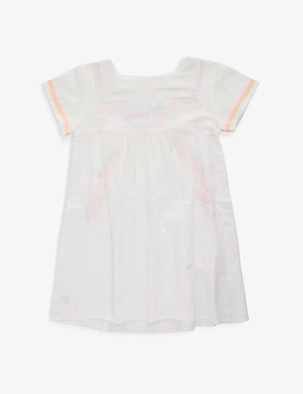 - Regular fit, square neck, short sleeves, contrast embroidery at front and back, gathered at waist, all-over seersucker texture