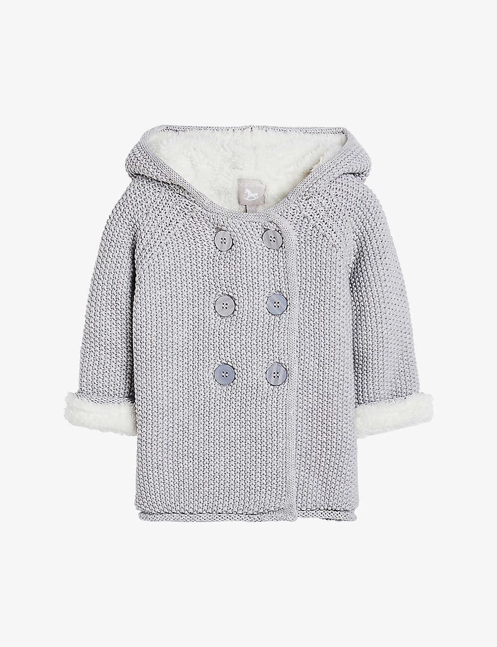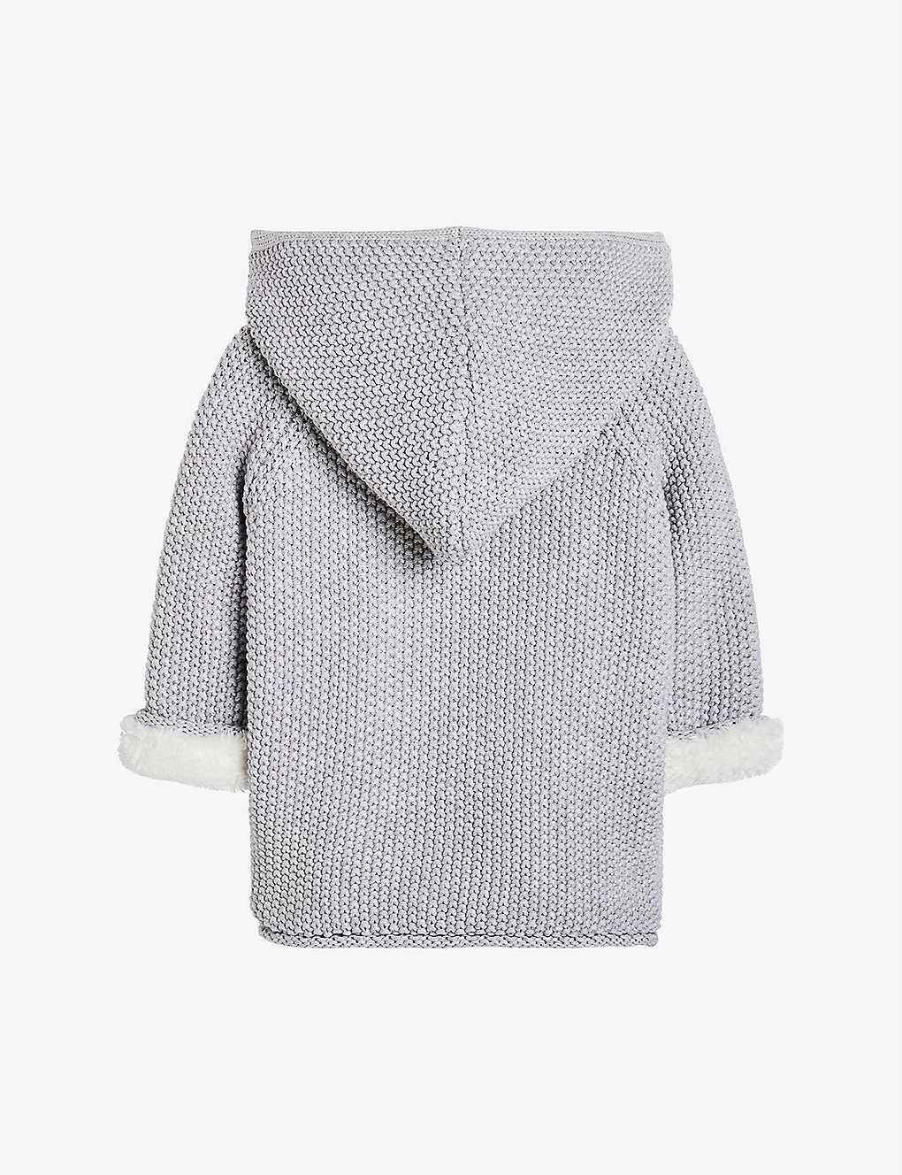 - Pointed hood, double-breasted fastening, fleece lining, knitted texture