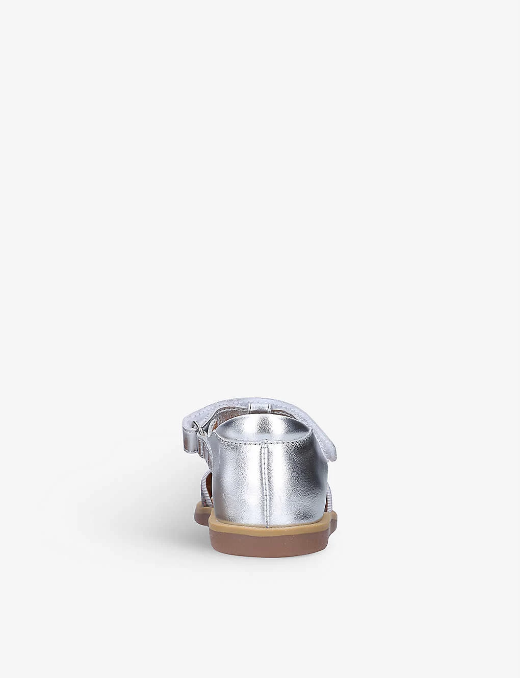 - Strappy upper, metallic finish, closed back