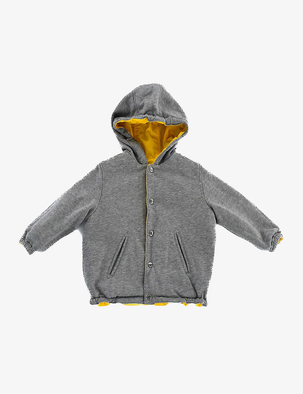 - Reversible design, hood, long sleeves, elasticated cuffs, two jetted pockets at front, logo print at back and along the arms, elasticated hem