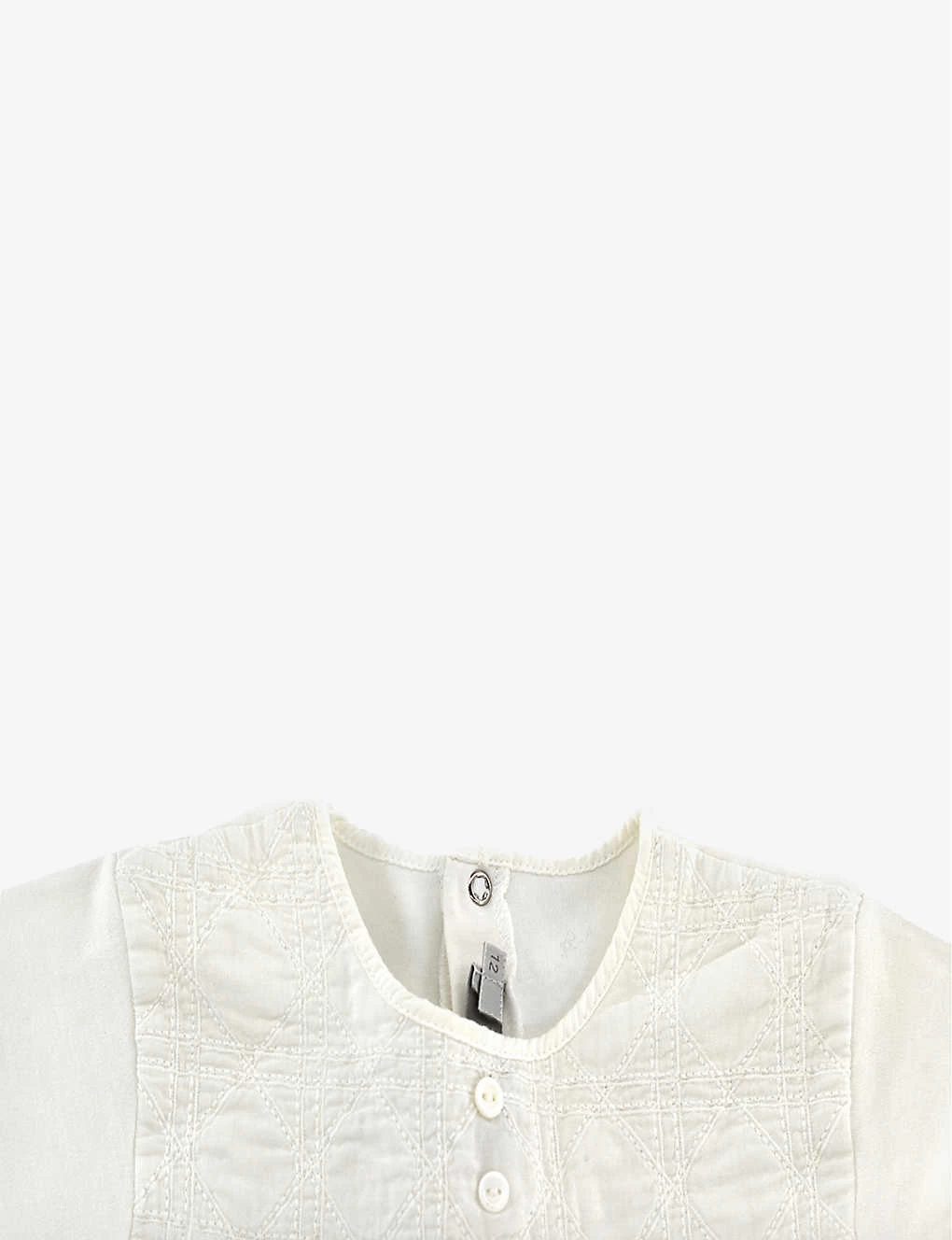 - Round neck, long-sleeved, cannage embroidered neck, two branded buttons at top