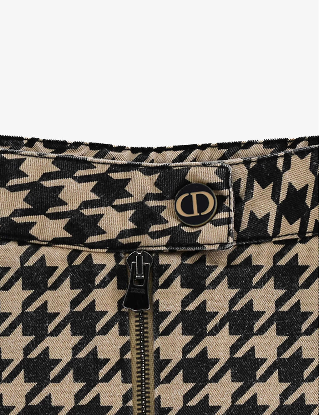 - A-line silhouette, two front pockets, zipped front, all over houndstooth