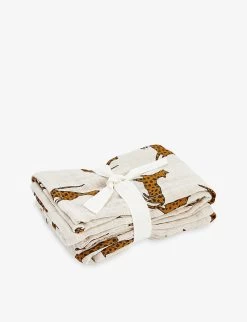 Liewood Lewis Animal-print Organic-cotton Muslin Cloths Pack Of Two