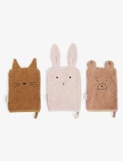 Liewood Sylvester Embroidered-puppet Three-pack Organic-cotton Wash Cloth