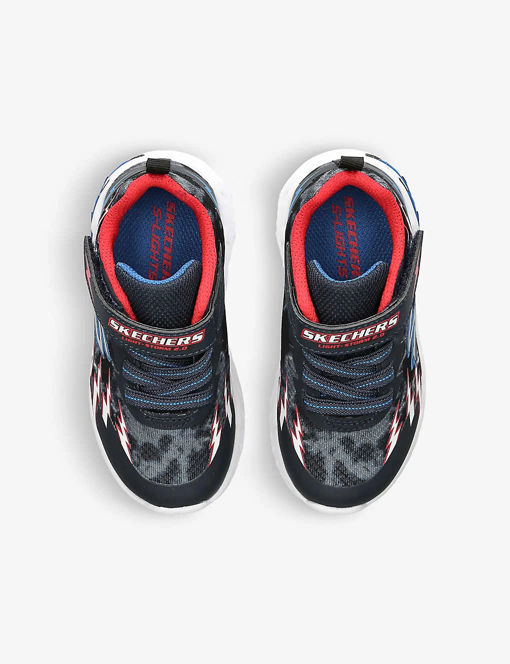 - Round toe, logo-embossed strap, lightning bolt design, light-up mid-sole, contrasting sole