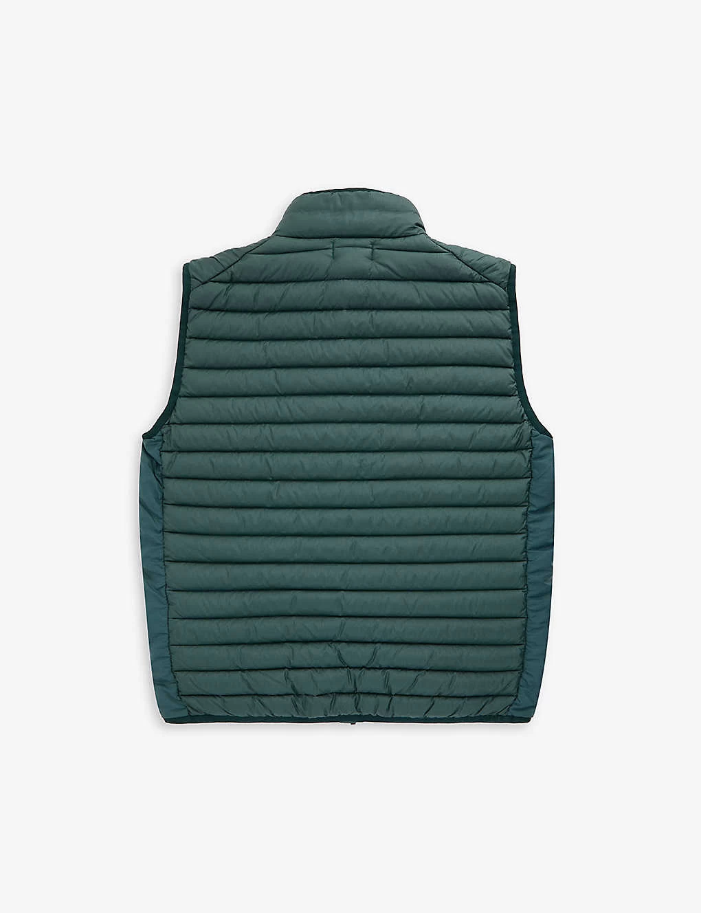- Regular fit, high neck, sleeveless, brand patch and two zip pockets at front, contrast panel at sides, all over quilted and padded, fully lined, elasticated hem