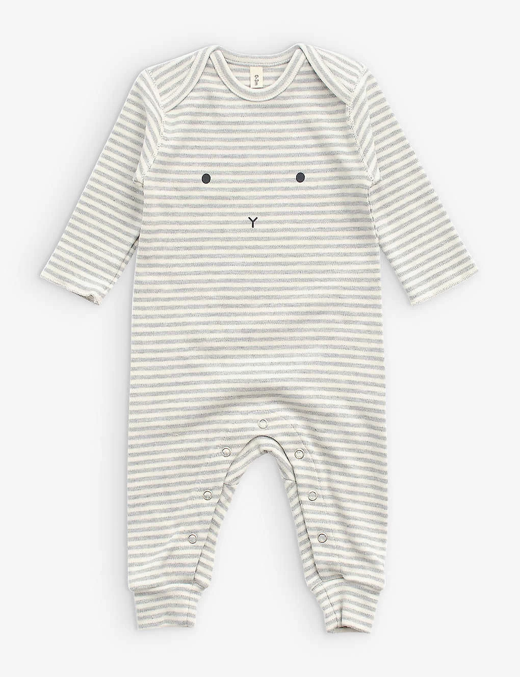 - Round neck, long sleeves, all-over stripes, bunny face at chest, legs, open feet