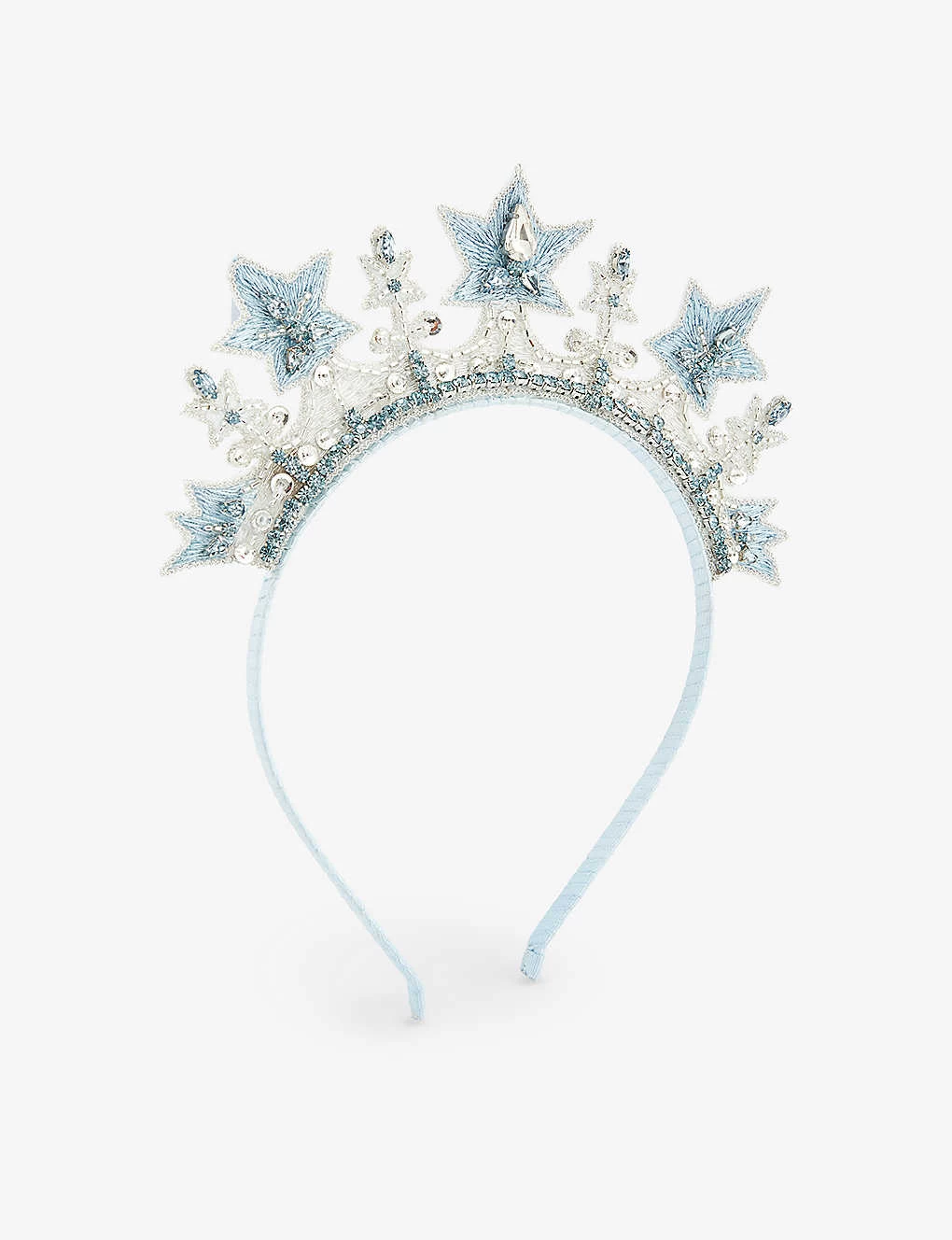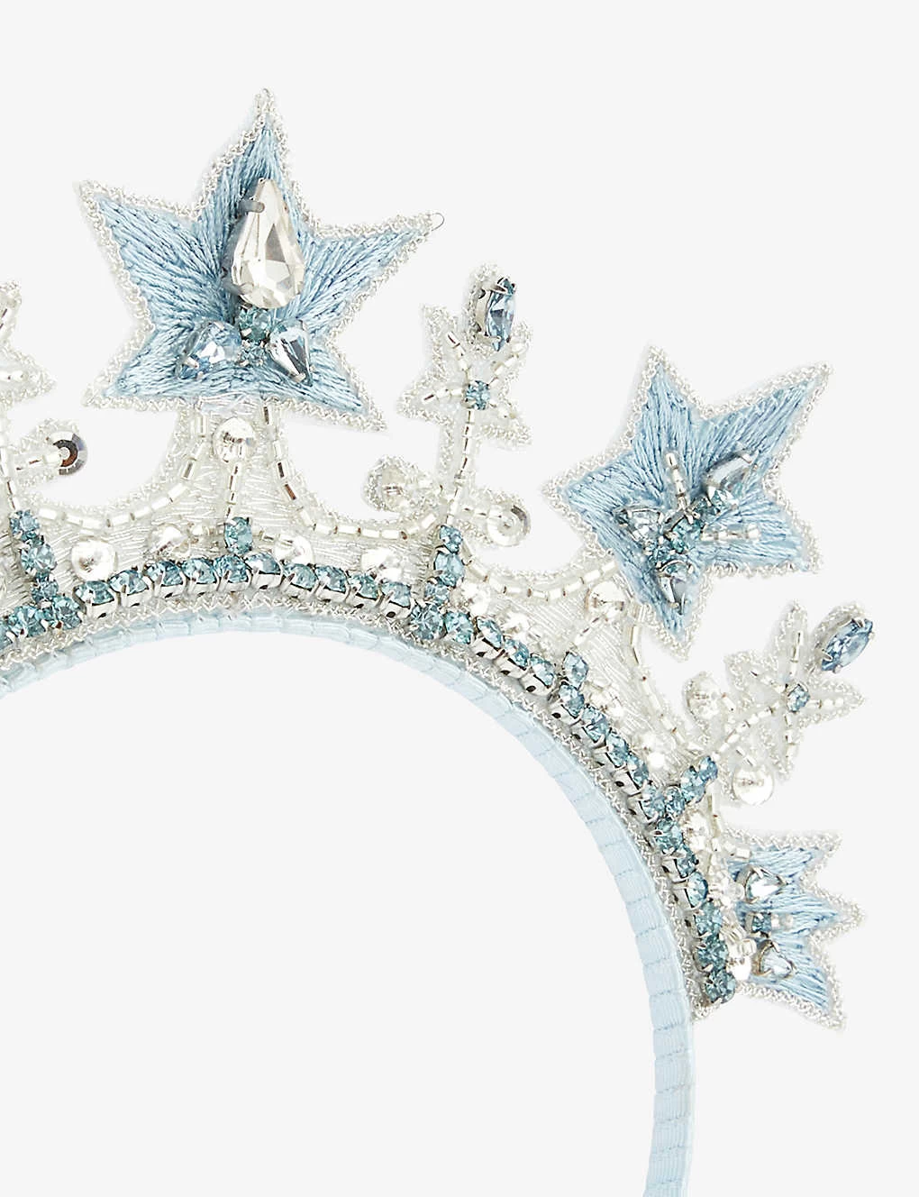 Disney Cinderella themed, structured ribbon wrapped around band, stars design panels on top, metal bead embroidery, crystal embellishments