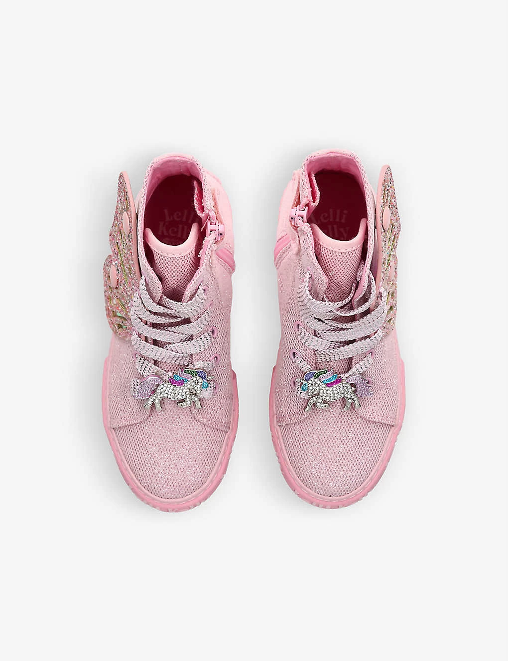 - Round toe, lace-up front, multicoloured unicorn wings embellishment, branded on the tongue, textured tread sole
