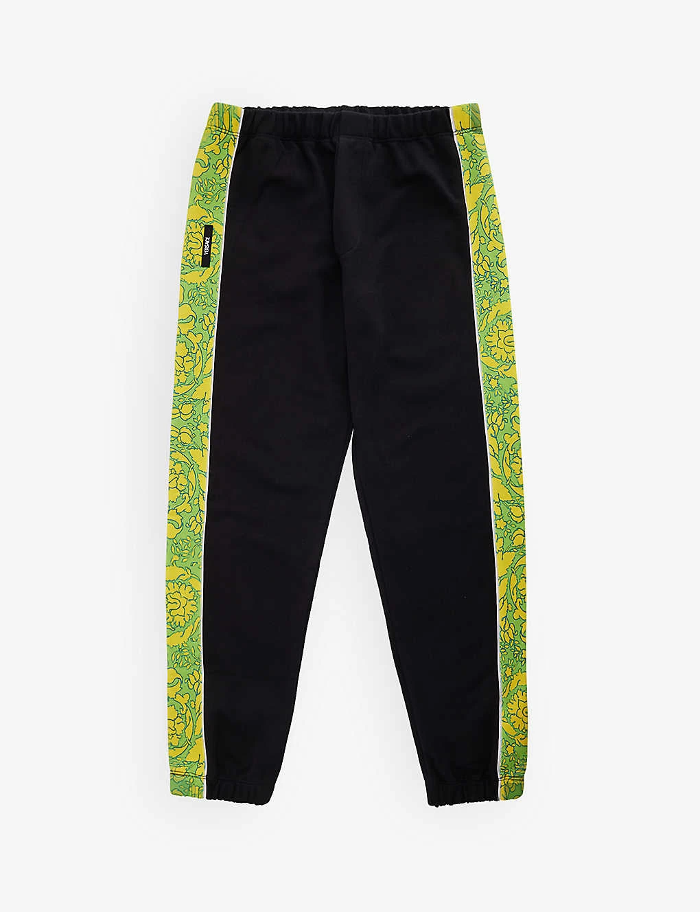 - Regular fit, mid-rise, elasticated waist, tapered leg, contrast branded panels at sides, brand patch at side, ribbed trims