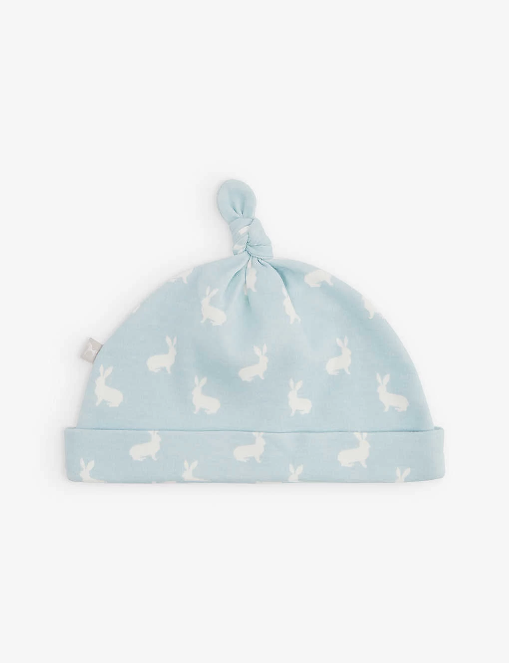 - Beanie: Folded brim, bunny print, knot at top